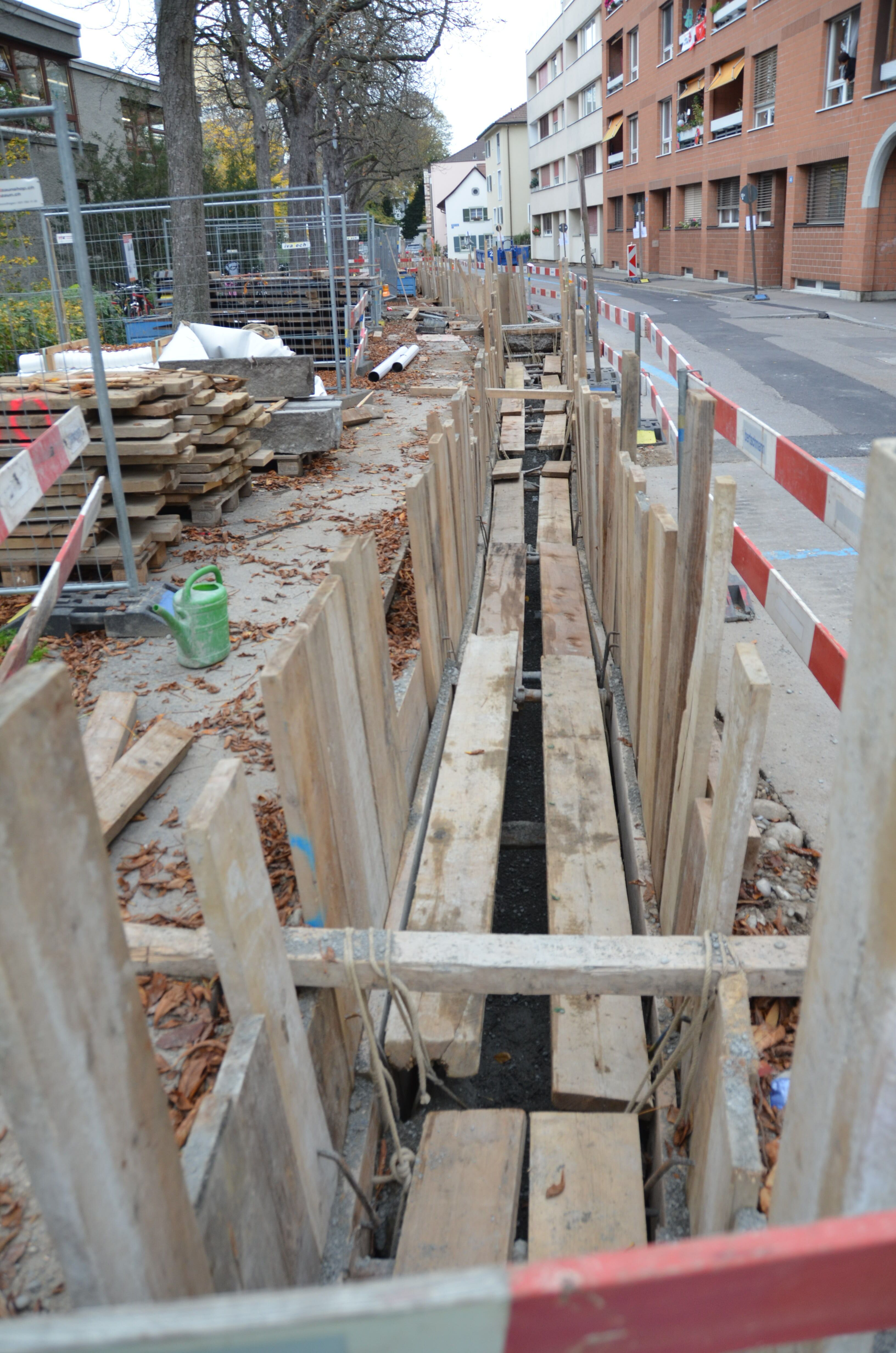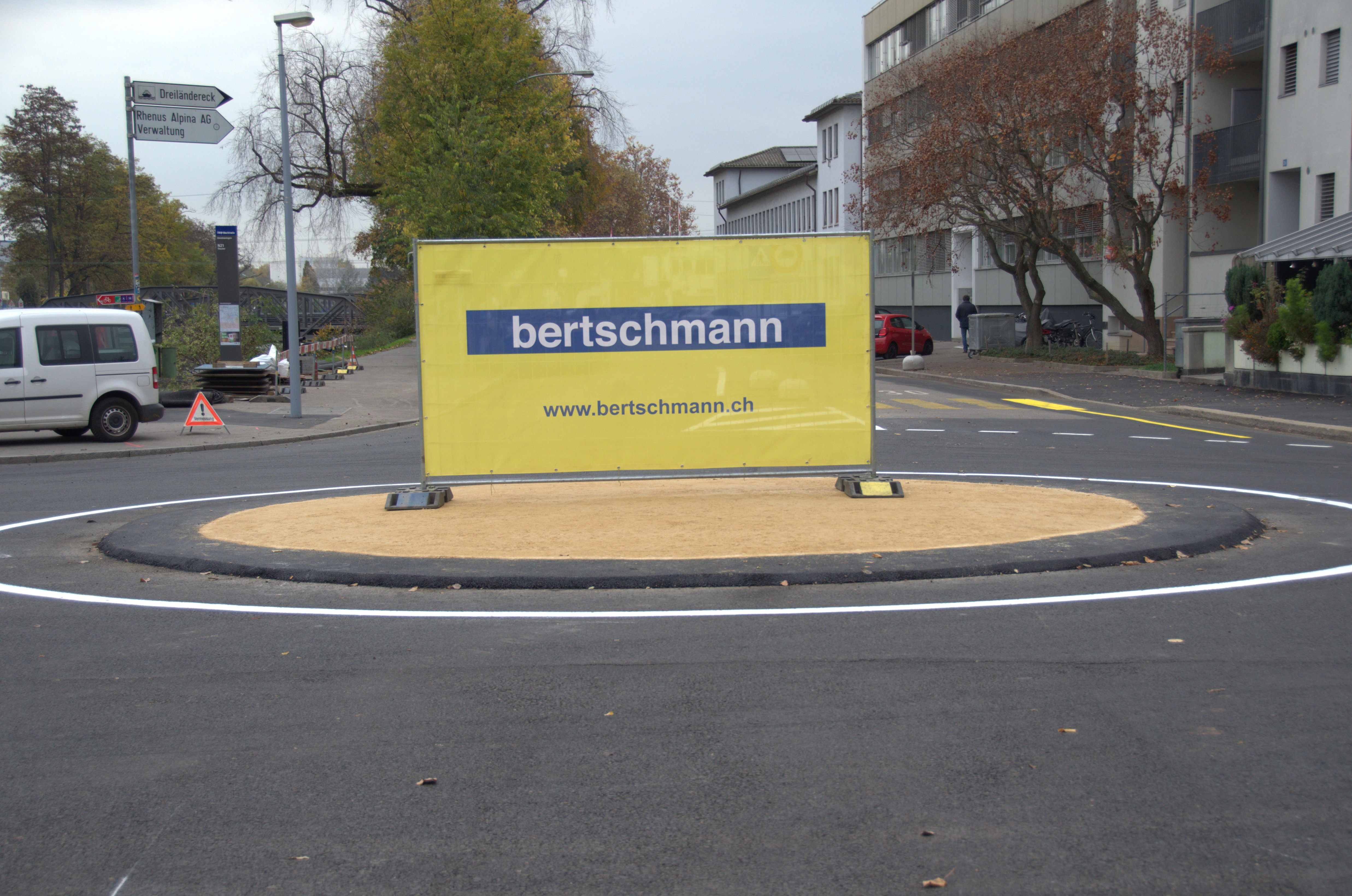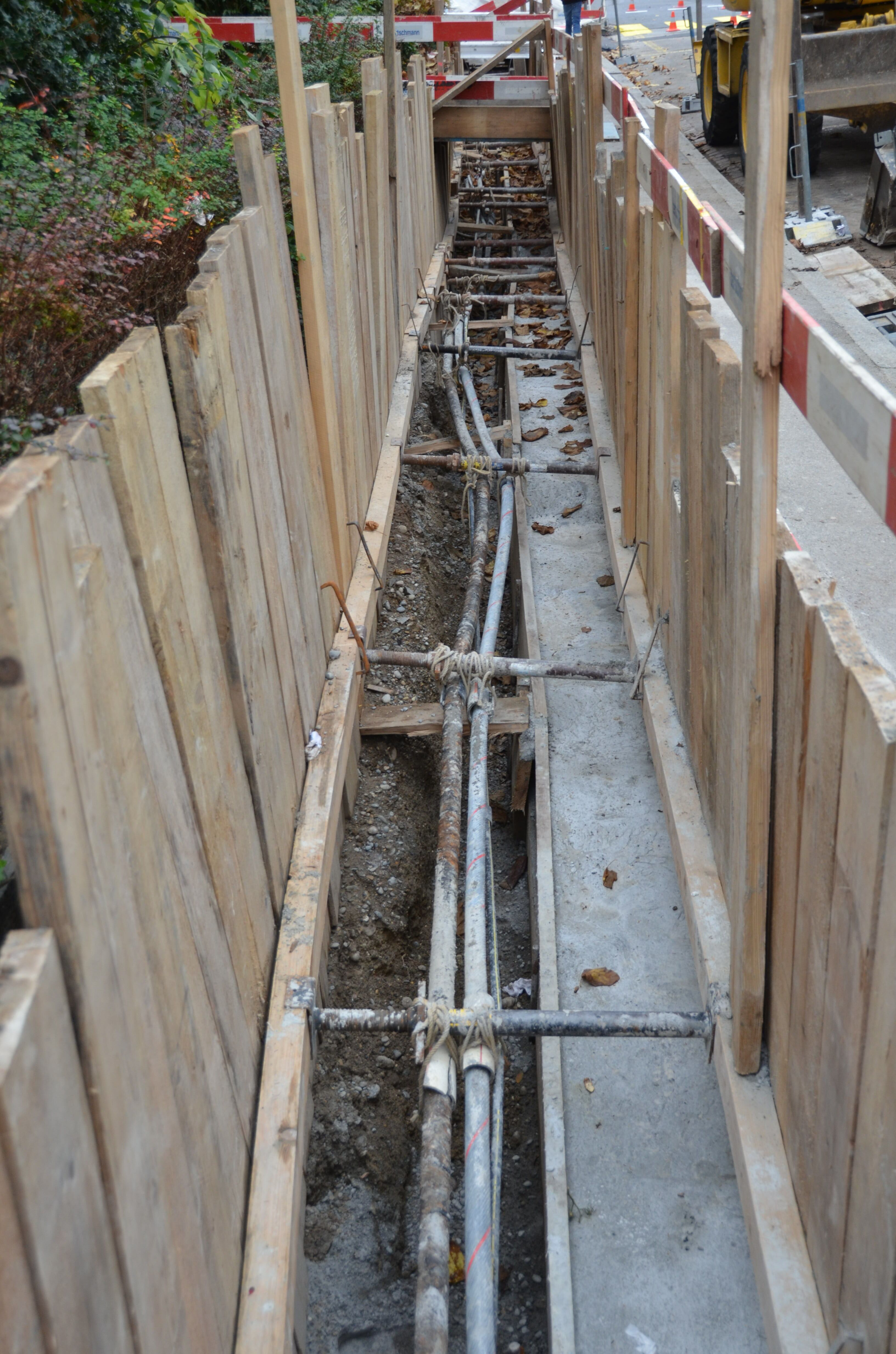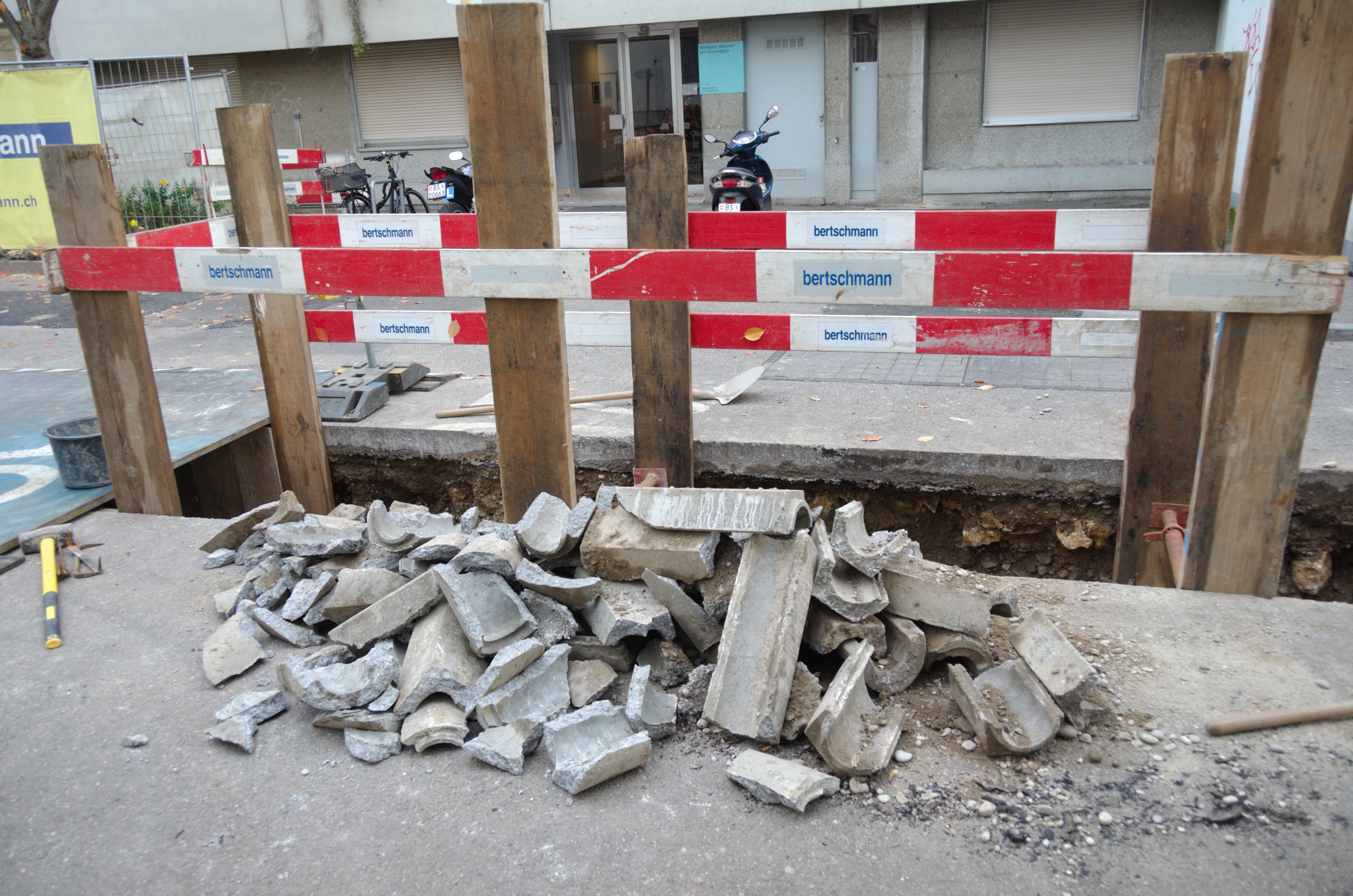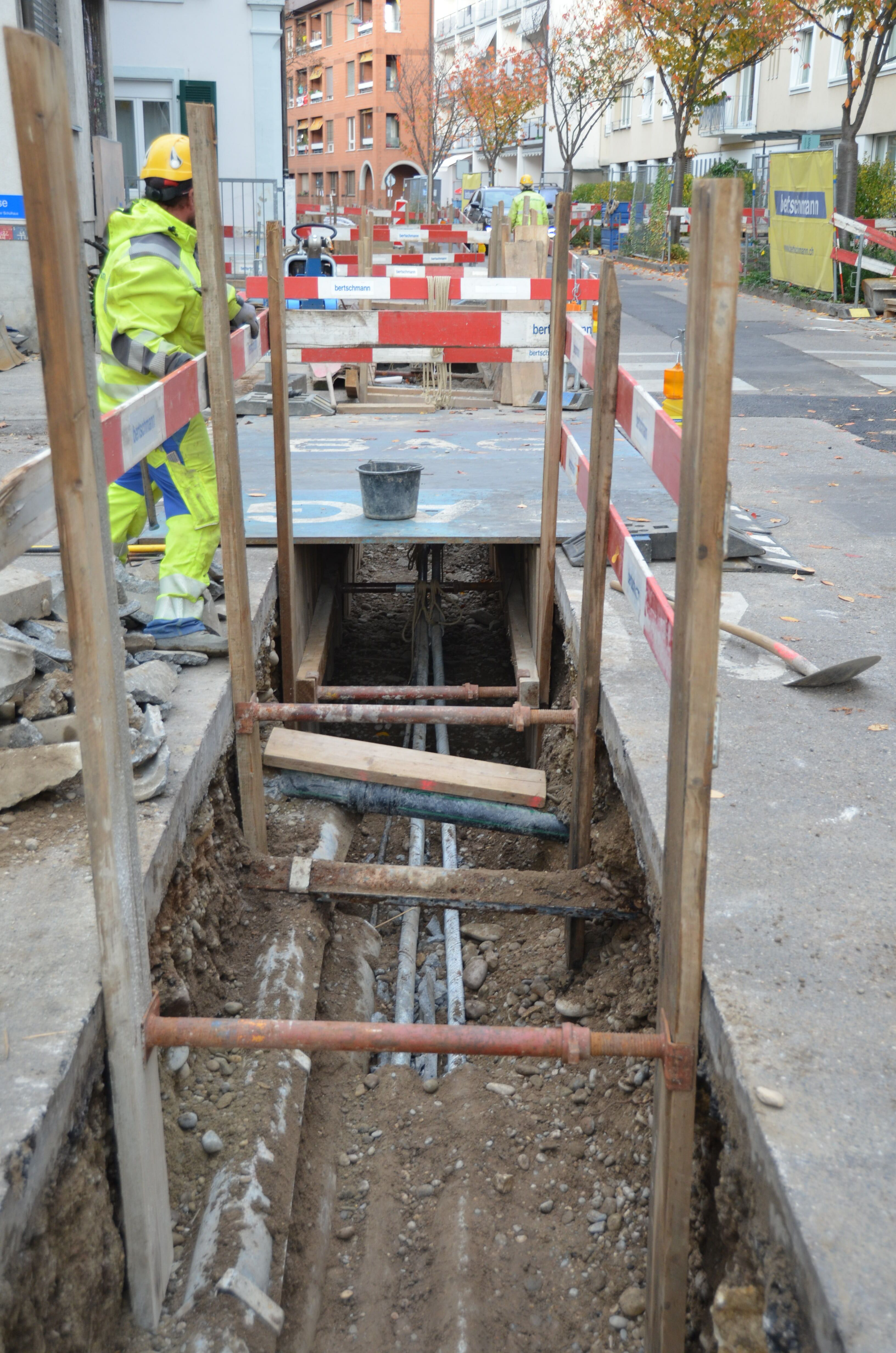 Die Bertschmann AG hat den Auftrag erhalten, das alte Dorfzentrum in der Nähe des Dreiländerecks zu erneuern. Die Fahrbahnen der Dorfstrasse, Hochbergerplatz sowie der Schulgasse sind in einem schlechten Zustand und müssen erneuert werden. Gleichzeitig erneuert die IWB die Leitungen für Strom, Wärme und Wasser. Damit diese Arbeiten ausgeführt werden können, haben die fleissigen Arbeiter der Bertschmann AG die Gräben vorbereitet. Eine neue Fernwärmeleitung wird ebenfalls vom Weilerweg bis in die Dorfstrasse erstellt. Hierbei werden auch die Strassenbeläge erneuert und fünf zusätzliche Bäume gepflanzt. Die Verkehrssicherheit wird erhöht.