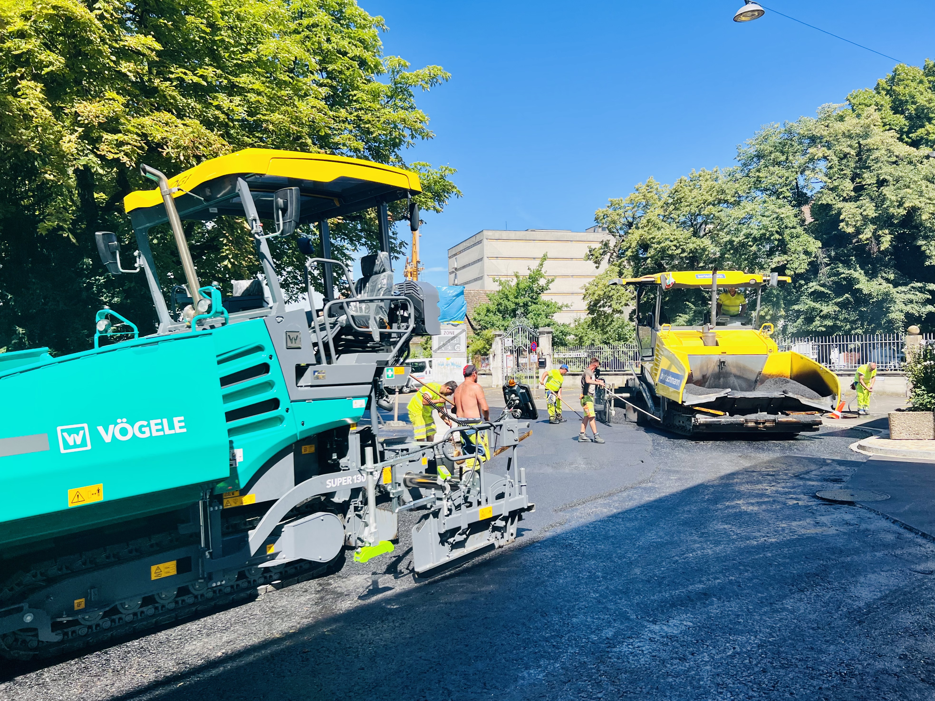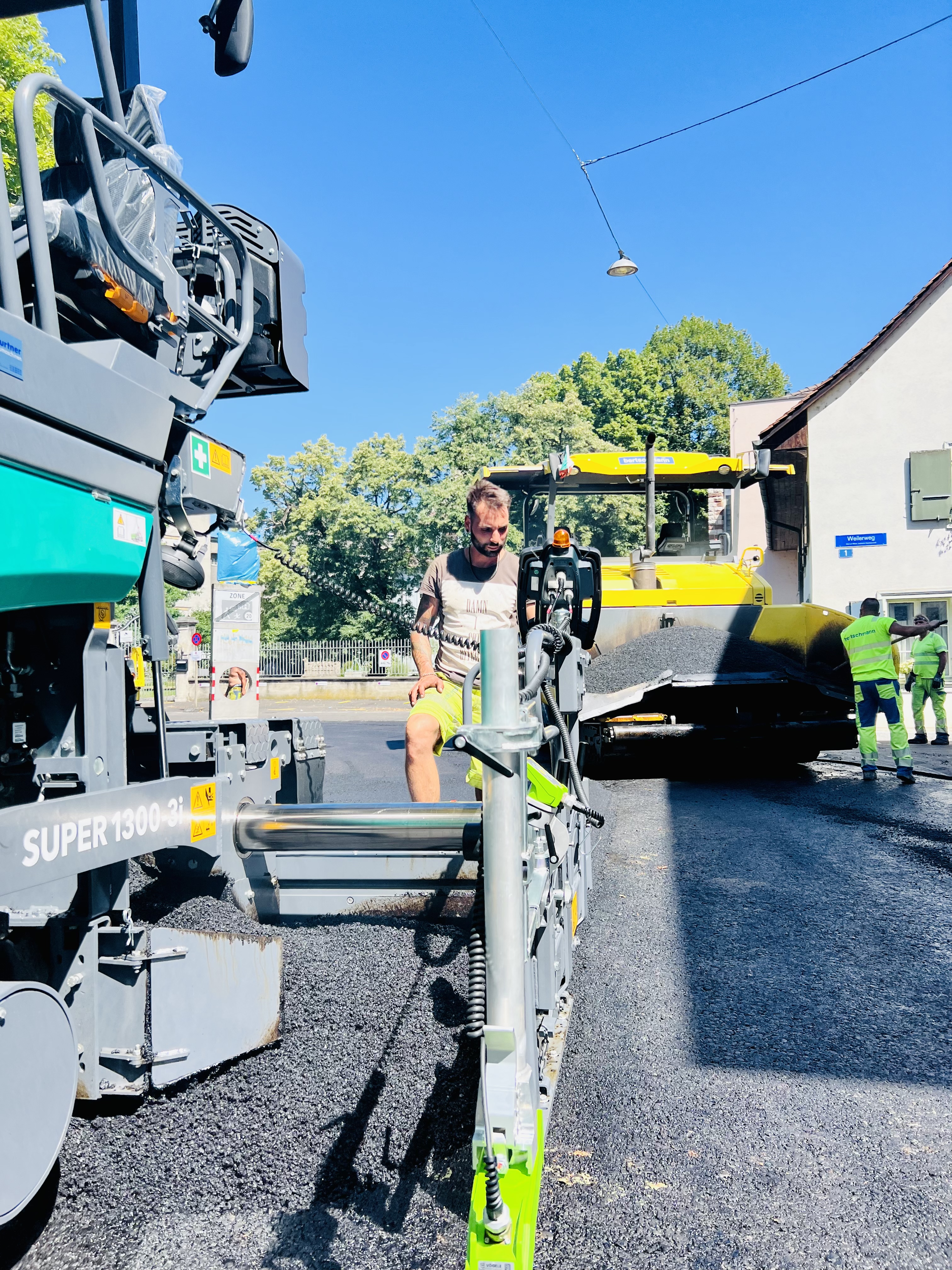 Mit dem Einbau des Deckbelages wurde am Wochenende die Endphase der Baustelle an der Dorfstrasse eingeläutet.