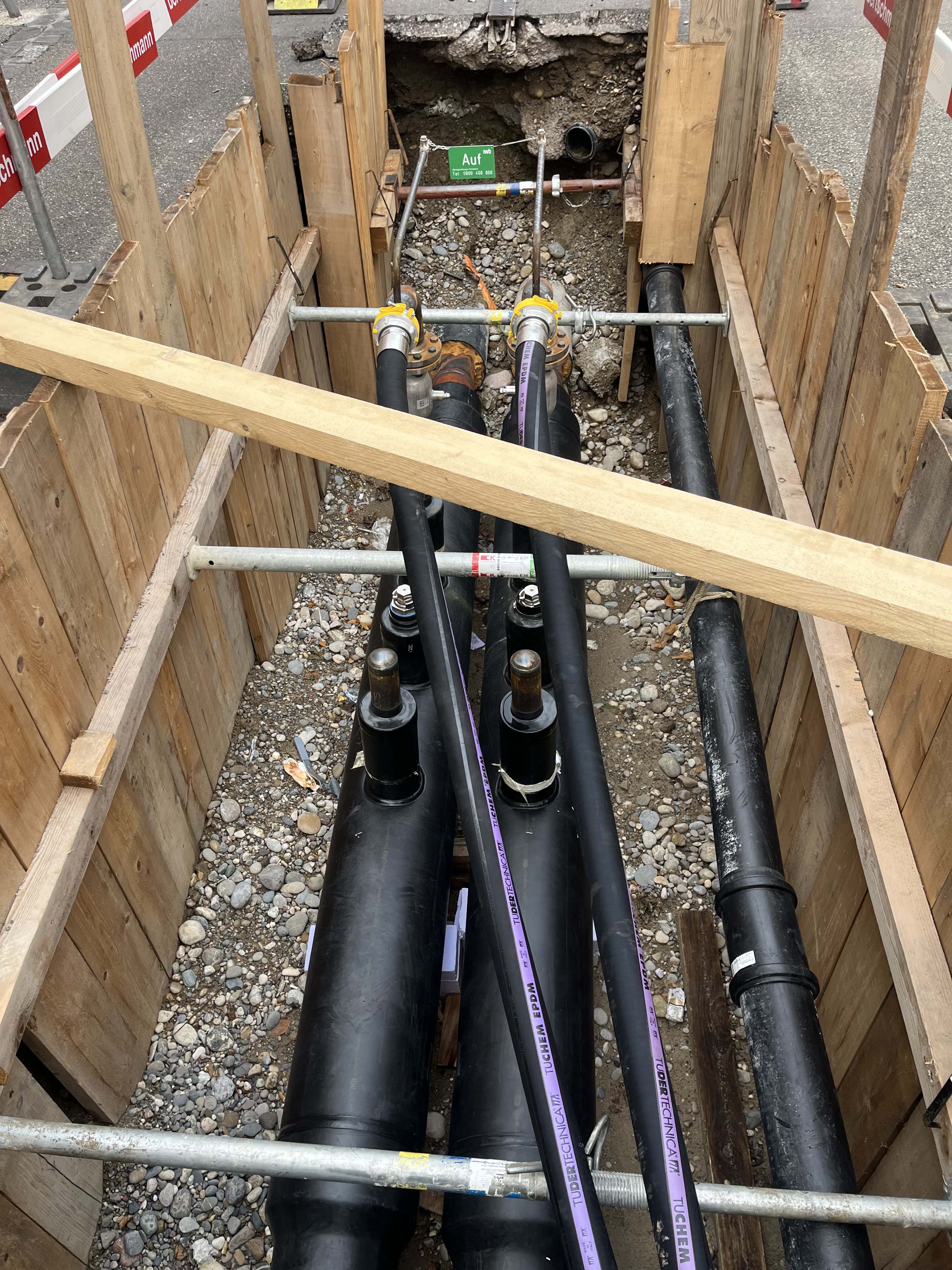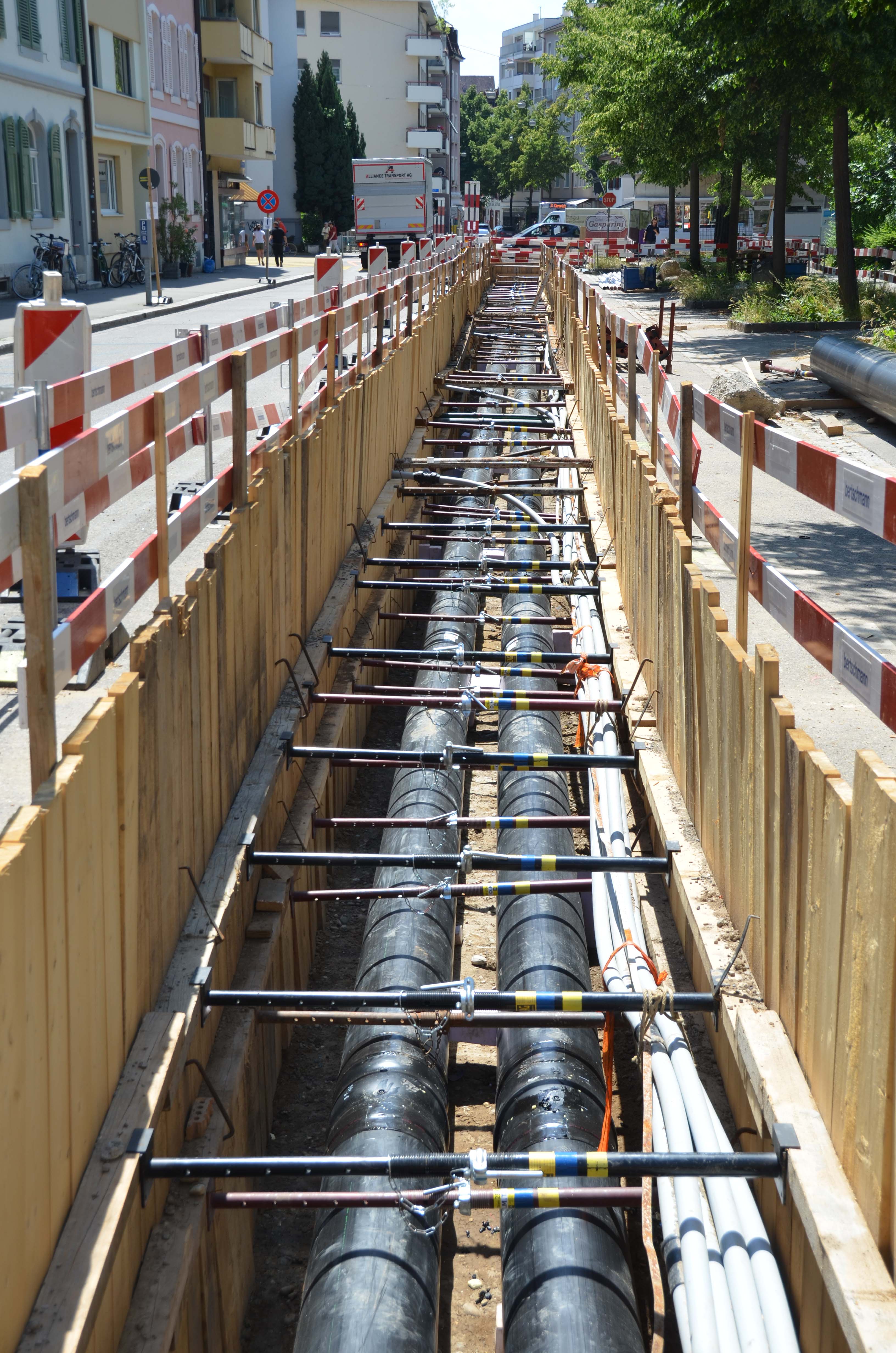 Es wurden neue Transport- und Versorgungsleitungen ab dem bestehenden Leitungsende im Claragraben bis in die Bäumlihofstrasse erstellt. Zugleich wurden Versorgungsleitungen in der Riehentorstrasse, Kirchgasse, sowie Rheinfelderstrasse/Grenzacherstrasse gebaut. Am bestehenden Leitungsende im Claragraben wurde der bestehende Erdschacht für den Einbau einer Beimischstation erweitert. Zudem wurden zwei weitere begehbare, sowie 5 nicht begehbare Ortsbetonschächte errichten. Diverse Hausanschlüsse wurden erstellt und Kleinmassnahmen für die öffentliche Beleuchtung wurden errichtet. Im Abschluss wurden alle Strassenabschnitte neu asphaltiert.