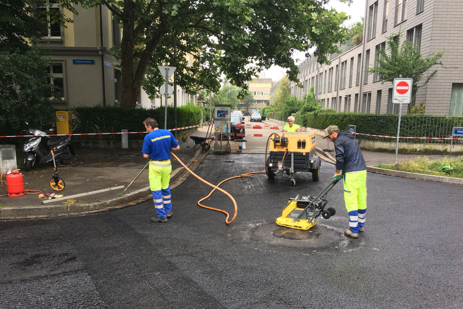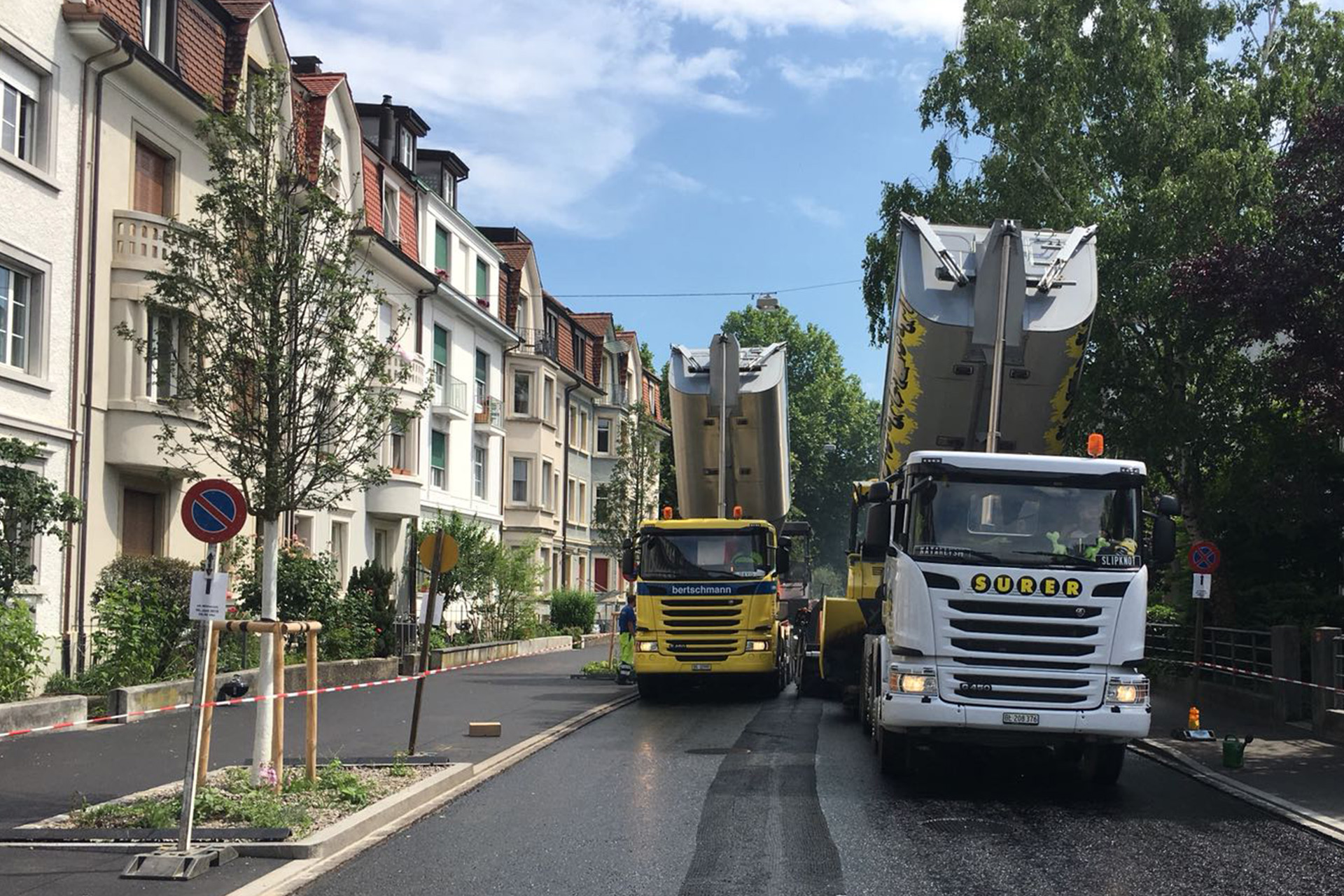 Nun ist die Baustelle abgeschlossen und unser Polier Luis Varela hat die fertige Strasse auf Video festgehalten. Das Resultat kann sich sehen lassen - die Wettsteinallee erscheint in neuem Glanz und wertet das Quartier deutlich auf.