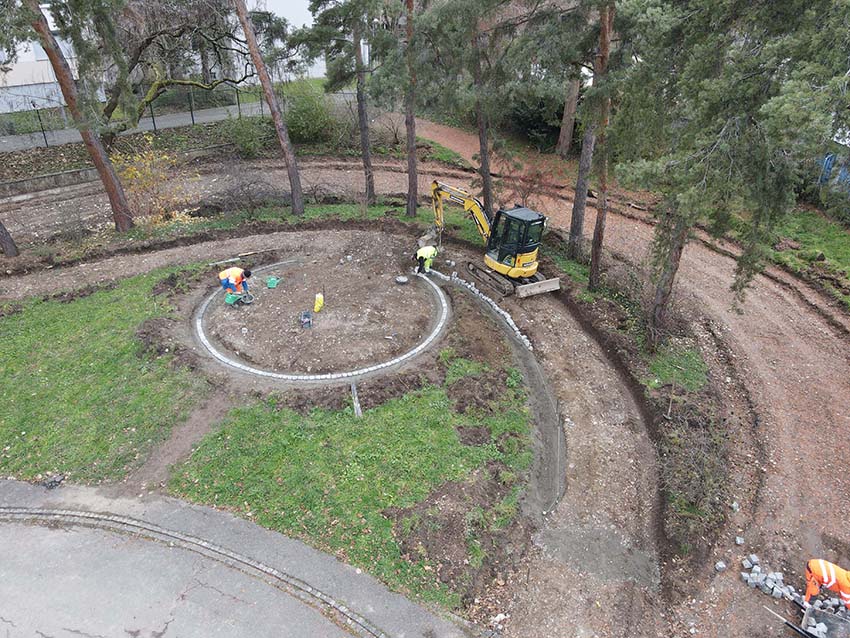 Im Verkehrsgarten erfolgt eine Aufwertung und Korrektur des kompletten Wege- und Fahrbahnnetz sowie der Randabschlüsse gemäss historischer Gestaltung.
