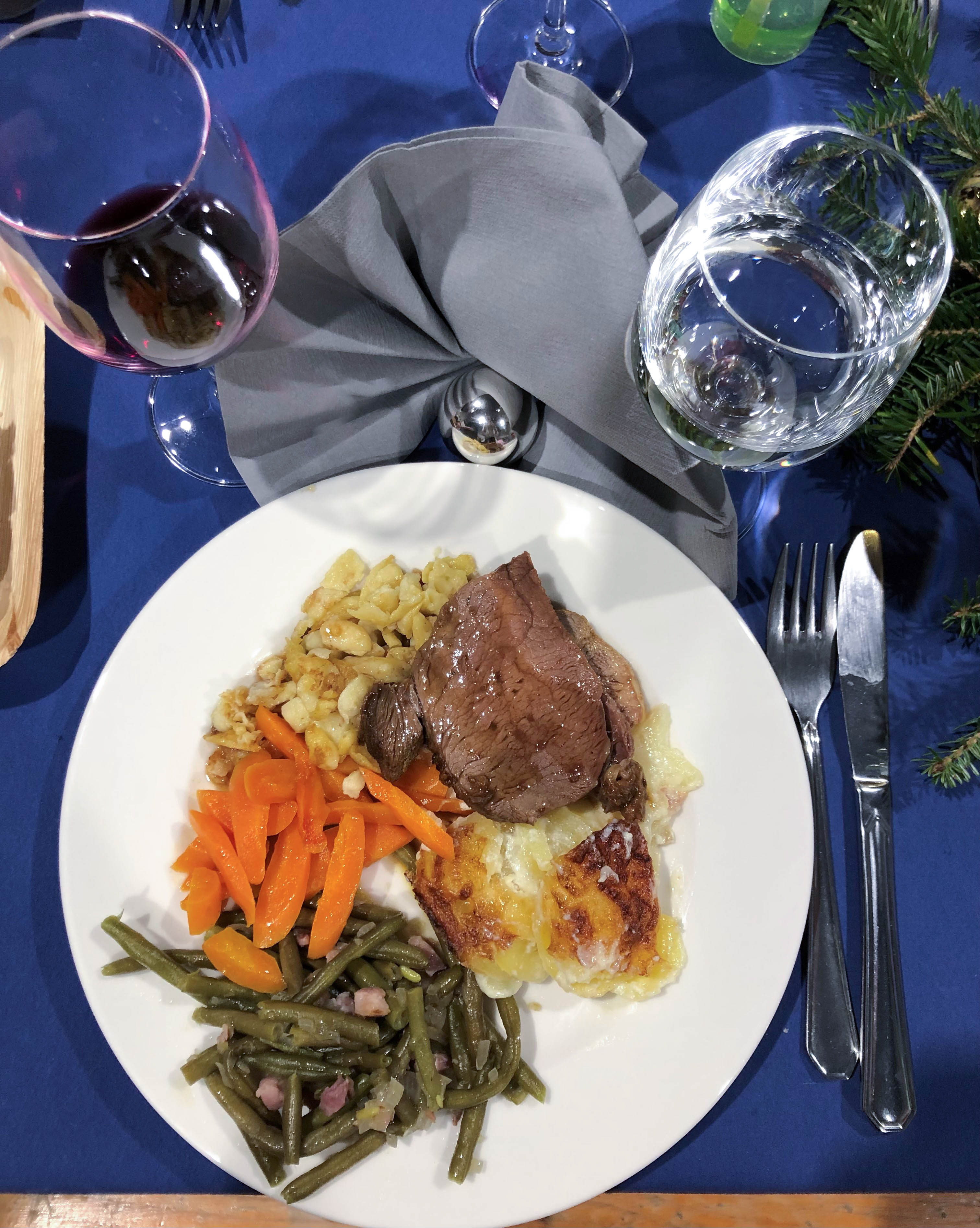 Mit einem Apéro der Metzgerei Henz aus Laufen (BL) und der Swiss-Bar aus Sulz (AG) hat der Anlass gemütlich gestartet. Die zahlreichen Mitarbeiter/innen genossen es, abseits der Baustellen eine gemütliche Zeit zusammen zu verbringen. Anschliessend durften wir uns erneut von der Firma Henz Feinkost und Delikatessen zum Abendessen verwöhnen lassen. Vor allem die Hauptspeise mit Rinds Hohrücken sowie der Kalbsschulterbraten mit Jus, Spätzli, Kartoffelgratin und verschiedenem Gemüse war hervorragend.