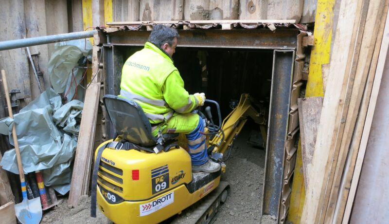 Was tun, wenn trotz Tiefbauprojekt der Strassenverkehr ungehindert fliessen muss und kein Rohrvortrieb möglich ist? Dann ist ein Stollenbau die Lösung. Bertschmann ist eines der wenigen Unternehmen, dass diese bewährte Technik noch beherrscht. Dabei geschieht der bergmännische Vortrieb in reiner Handarbeit. Der Stollenbau ist nahezu in allen Böden, Dimensionen und Längen möglich. Die statischen Berechnungen von Bertschmann garantieren für die nötige Sicherheit.